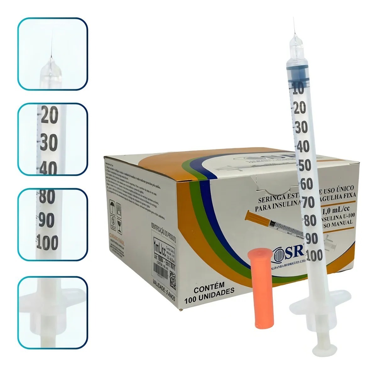 Seringa P/ Insulina Curta Ultrafina 1ml 6mm 0,25mm 100ui – SR UN