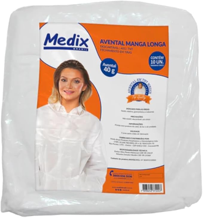 MEDIX Avental Descartável Manga Longa 40G Medix – Pacote Com 10 Unidades